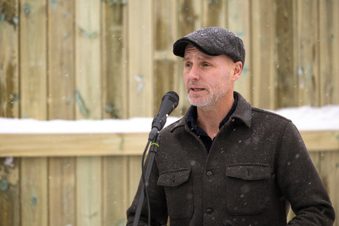 Ordförande i Jämtlands läns Byggförening Marcus Olovsson inviger den nya återvinningscentralen för företag.